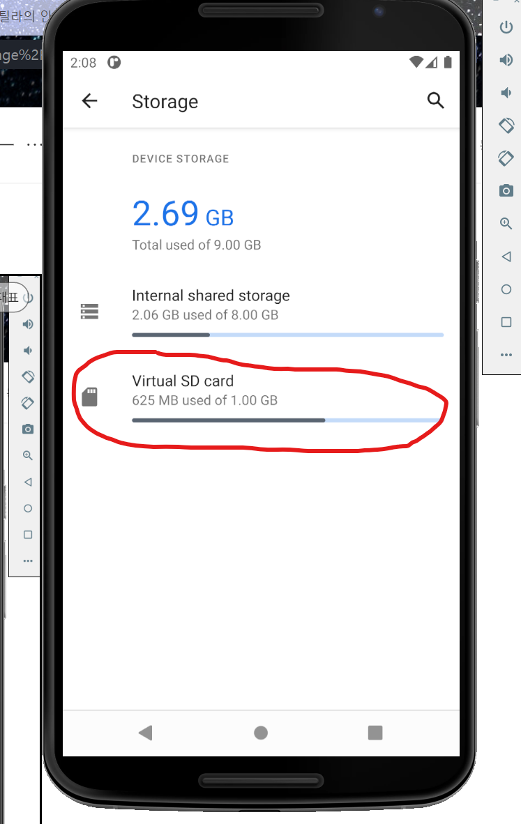 2. 스토리지(Storage)로 들어가서 가상SD card로 들어감