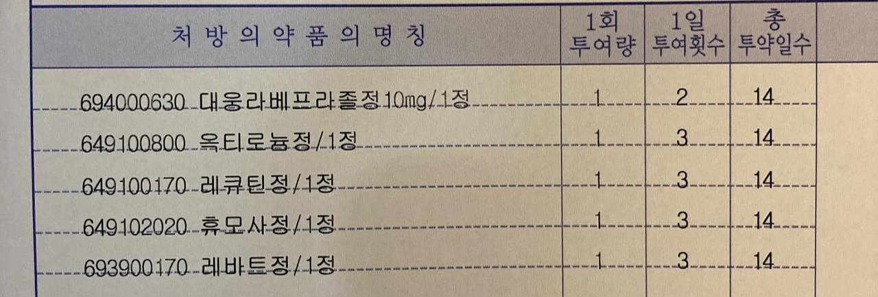 간단히 진료 받고 받은 약은 위와 장에 관련된 각종 약을 받았다. 약을 먹고 오늘이 9일째, 여전히 혀가 텁텁하고 밥먹고 누우면 역류하기 일 수 지만, 조심하면 목구멍 통증도 없는 위장이 조금은 진정된 상태. 뒤집어진 위장 덕분에 독한 항생제와 세균제제 약도 2일에 한번씩 맞는 항생제 주사로 바뀌었고 몸상태도 조금씩이지만 좋아지고 있다. 이렇게 조금씩 회복하기로~