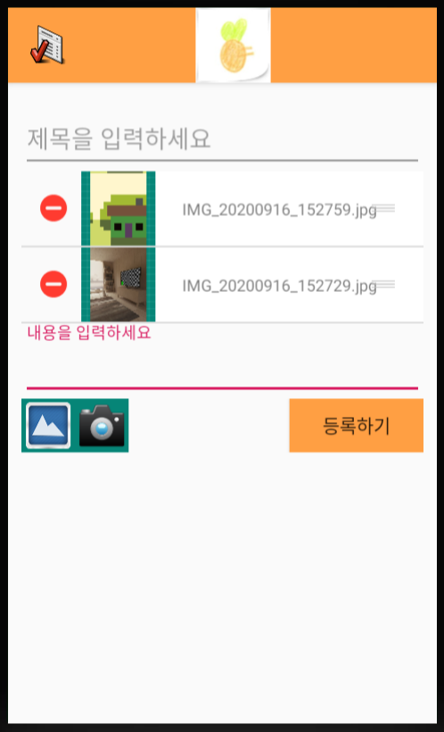 - 갤러리에서 파일을 선택 후, 리스트에 추가가 되지만 delete 버튼과 sort 버튼이 나타나지 않음
