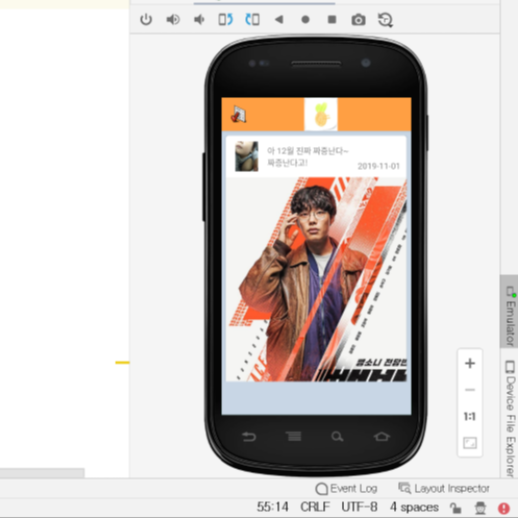 * 안드로이드 스튜디오 내에 에뮬레이터를 띄우는 기능을 실행해 보았다~