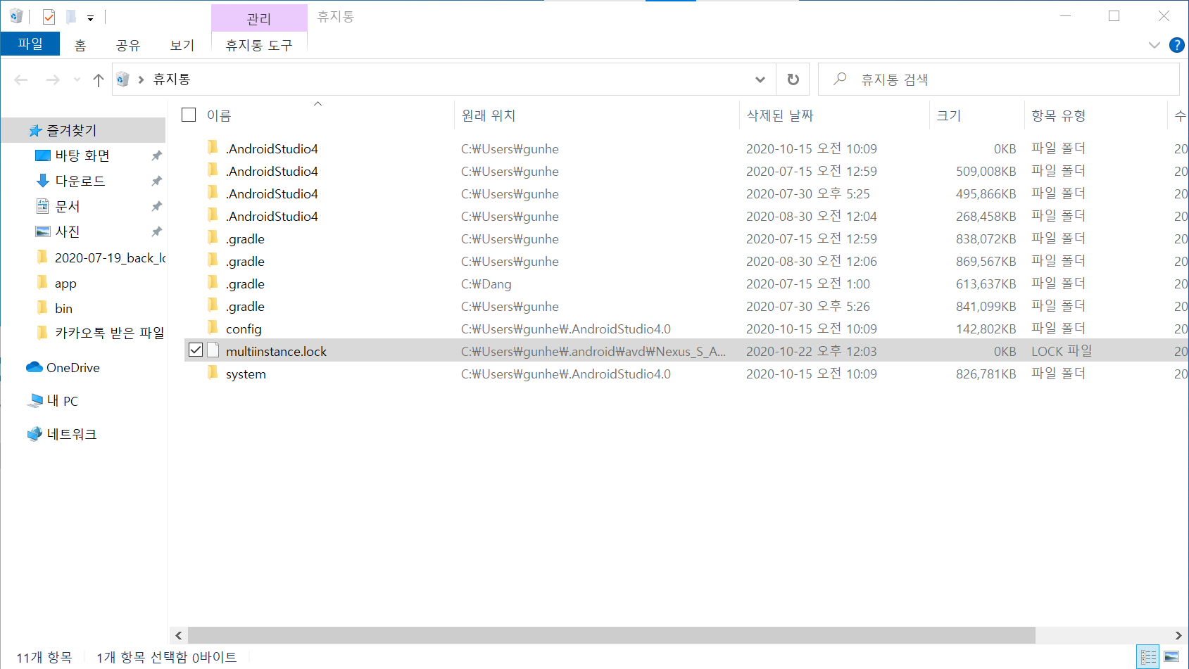사용자 폴더에 .lock 파일을 지우면 정상 동작 한다.