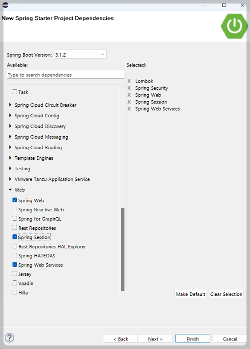 - dependency : Lombok, Spring Security, Spring Web, Spring Session