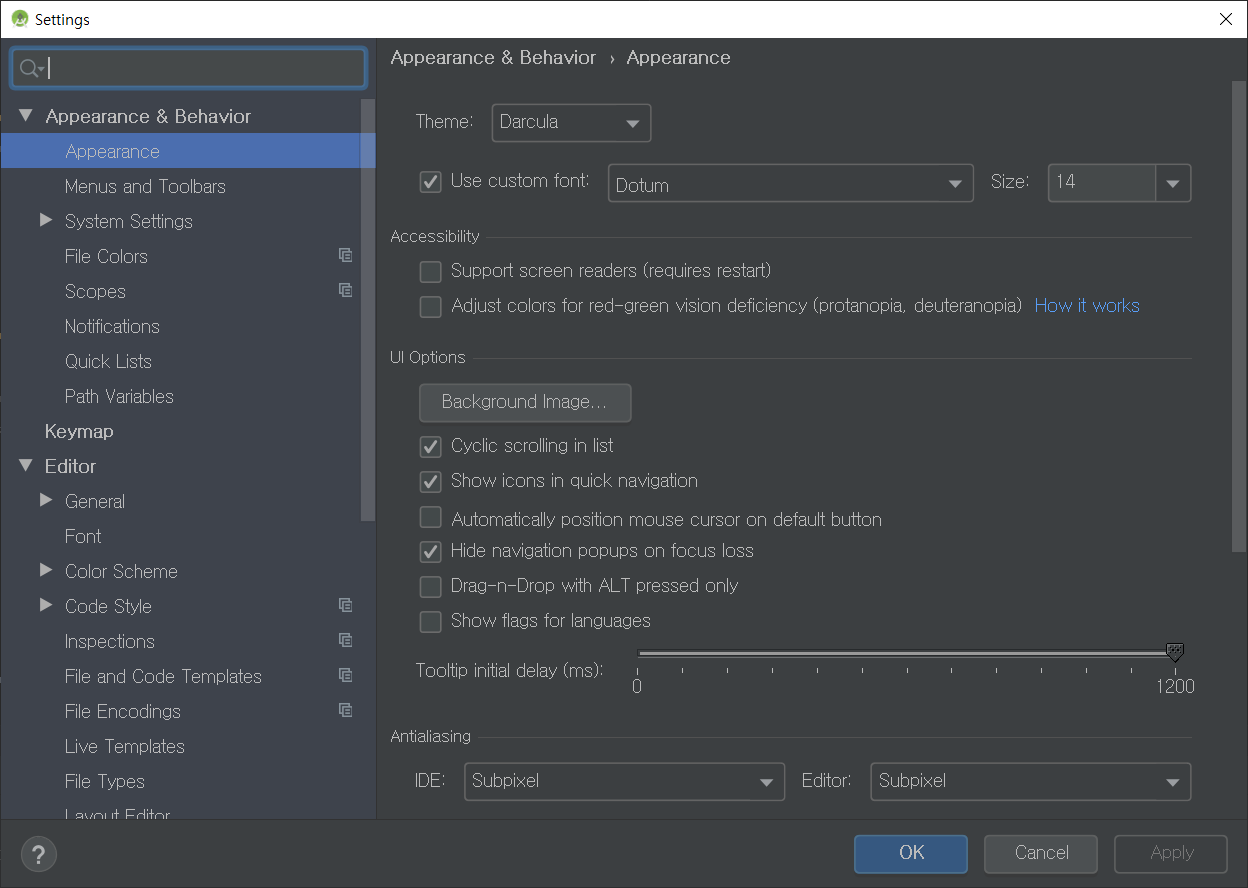 Appearance & Behavior > Appearance