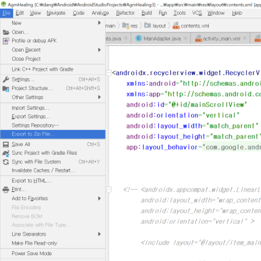 * 안드로이드 스튜디오 프로젝트 Export 백업하는 방법